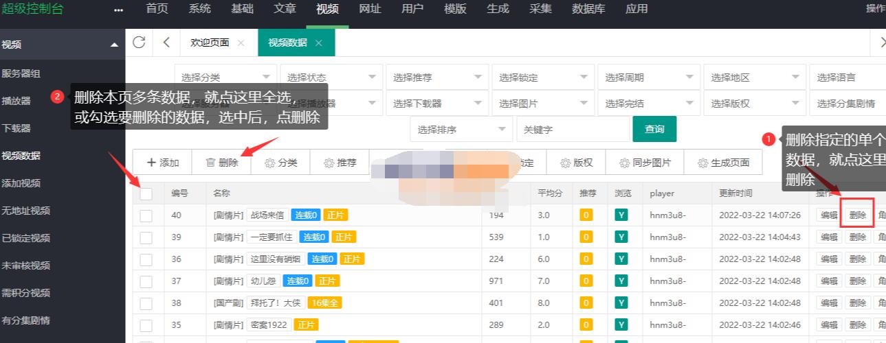 上面的删除方法使用后,会出现部分数据为空的播放组,最后再删除一遍空播放组即可 4、以此类推,你想怎么批量删除,设置好删除条件,点击批量删除即可