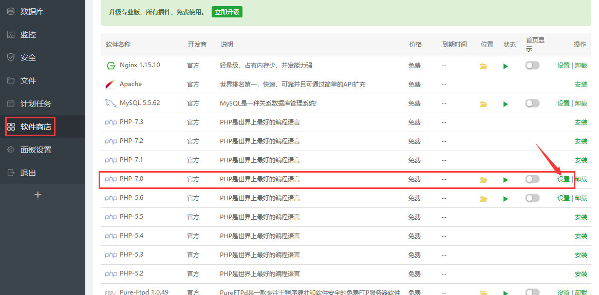 域名解析好,宝塔安装好,现在来建站,先安装运行环境,选择LNMP推荐就可以,PHP版本选择 PHP 5.6 特别提醒:苹果CMS V10 的PHP版本一定要在7.0 以上,才可以使用。