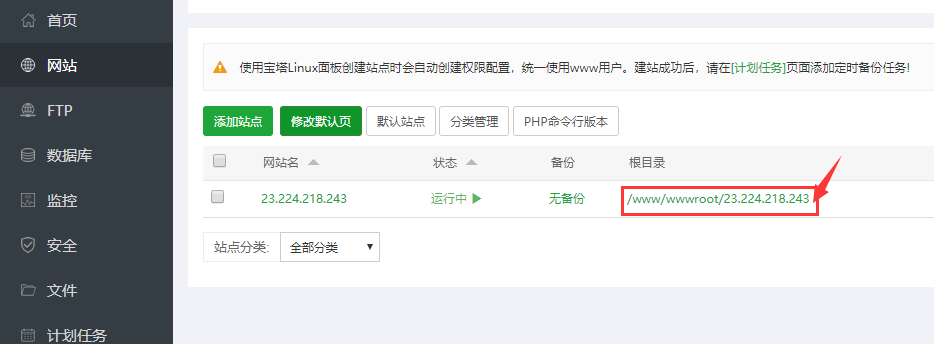 安装宝塔面板完成后有一个管理地址,用管理地址进入宝塔面板管理进行建站。