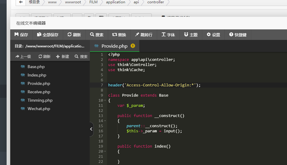 application/api/controller/Provide.php 在对应的位置填写如下内容: