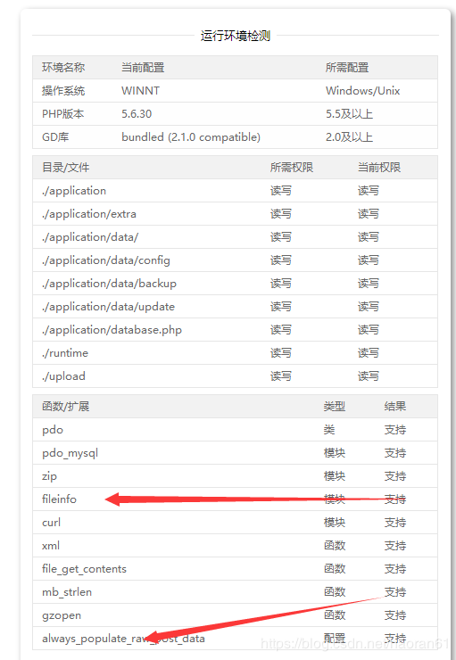 1 小时前 上传 箭头指向的两个地方,大部分人都会报错(我的没有报错是因为我装过N次了,配置文件已经改过了),说不支持,这里我们只需要进入php5.6的安装目录(护卫神的安装目录下面phpwec里面,找到php5.6的文件夹)打开配置文件(php.ini),alt+F 搜索这两个插件的名字,这时候你会看到前面会带注释符,我们把注释符删掉即可,然后进行下一步。