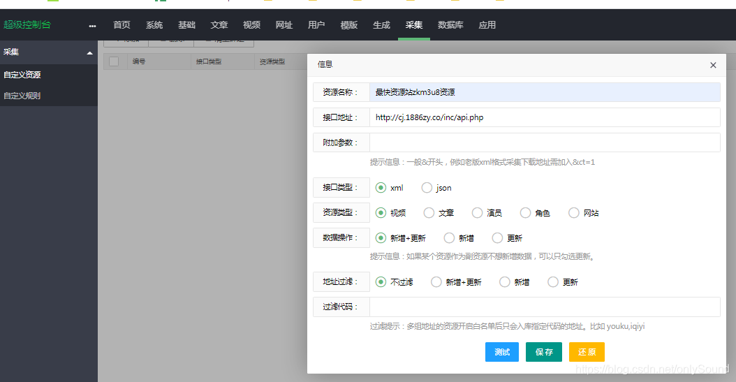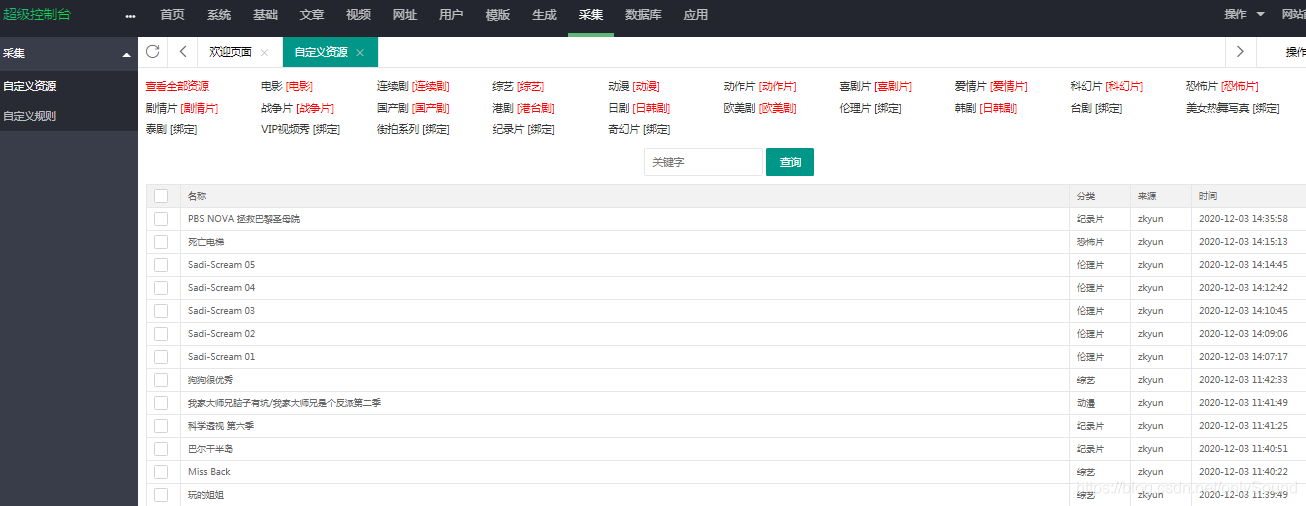 绑定分类,然后就可以采集资源了,采集结束后可以查看一下前台页面,电影应该是已经出现了