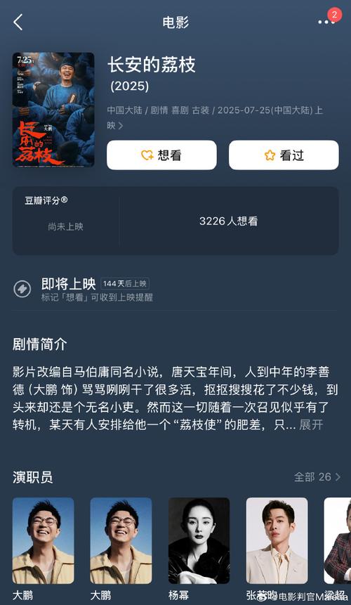 《长安的荔枝》这部电影,就在7月18号全国开映了。大鹏导演刘德华、杨幂也来帮忙演。这电影是根据马伯庸老爷子写的同名小说改的。故事发生在唐朝天宝那会儿。主角叫李善德,是大鹏演的。他是个中年人,在长安城里当个小官。日子过得不算顺当,干活的时候老爱抱怨,花钱又抠抠搜搜的。可就算这样,他*没啥名气,官*没升上去。李善德的日子突然有了转机。一次偶然,他被皇帝叫去见了一面。给他派了个活儿——去南方送荔枝。这活儿在唐朝叫“荔枝使”。要是李善德干成了,那好处可就多了,钱和官都能升。对他来说,这是个能改变现状的好机会。可要是搞砸了,后果也挺吓人的。电影就是讲李善德怎么去完成这趟送荔枝的差事。一路上,他得克服各种困难,任务也老出问题。拍**电影的人手挺强的。大鹏不光是导演,还一起写了剧本。沈雨悦、戴思奥也参与了编剧。演的主要演员有白客、庄达菲、刘俊谦。刘德华、杨幂、常远是来很帮忙的。魏翔、王迅、孙阳、林雪、宋小宝、付航也是来友情客串的。张若昀是特意来演个角色的。这电影请的演员是真不少,大家演得好不好,就看大家去电影院看了。电影是根据马伯庸的小说改的,马伯庸是个挺有名的作家,他写的书都挺有劲儿。**改编,电影里尽量保持了小说原来的意思。电影会**唐朝的样子,让大家能知道人怎么过日子。荔枝是这部电影里头非常重要的东西,送荔枝那过程,可不是那么容易的。李善德得费老大劲才能完成任务。电影也会**他的成长,大家能看到他怎么一步步努力。电影拍得挺用心的。就希望这电影能让大家看得过瘾。7月18号,大家有空**去电影院看看。《长安的荔枝》这部电影,确实挺值得等一等。