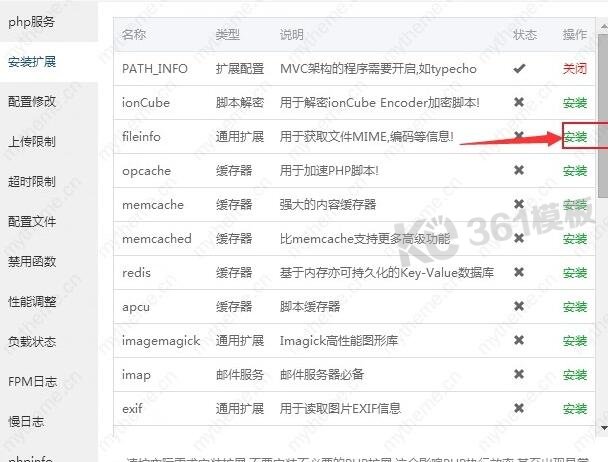 【3】选择安装fileinfo扩展,将缺少的fileinfo插件安装一下就可以了