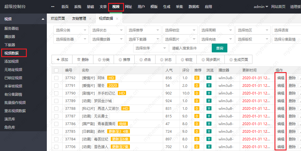 声明:除特殊声明外本站文档均由作者原创,转载请注明出处,原文地址:苹果cms采集后无法播放原因排查及解决教程 苹果cmsv10采集后无法播放黑屏原因排查,首先确定是否导入播放器,采集资源后如果没有添加对应的播放器是无法正常解析播放的,正确的采集流程是首先添加播放器然后进行采集,这样才能让每个资源识别到对应的播放器正常播放,而且每个资源站都有自己独立的播放器 第一步,通过检查视频数据,查看资源数据是用的哪些播放器来播放的,如下图看到播放器一栏里就可以确定资源用的是wlm3u8编码的播放器。