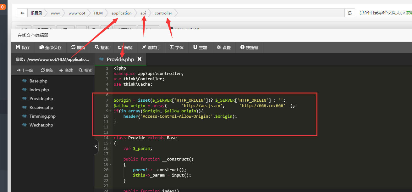 application/api/controller/Provide.php 在对应的位置填写如下内容: