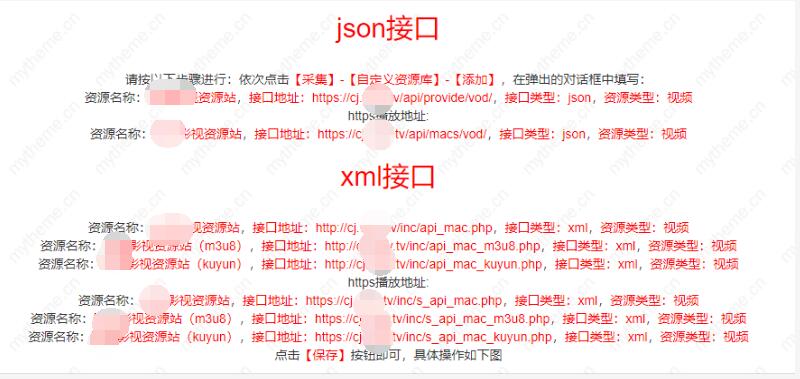 1 小时前 上传 2,苹果cms采集完没有播放地址原因之二(是否采集接口添加错误) 下面是某个资源站提供的苹果cms采集接口,【json】接口和【xm|】接口两种接口,这两个接口又分【http】和【https】所以在添加采集的时候要结合自己的网站把【http】和【https】区分开来,否则即使添加对应的播放器后也不会播放的。