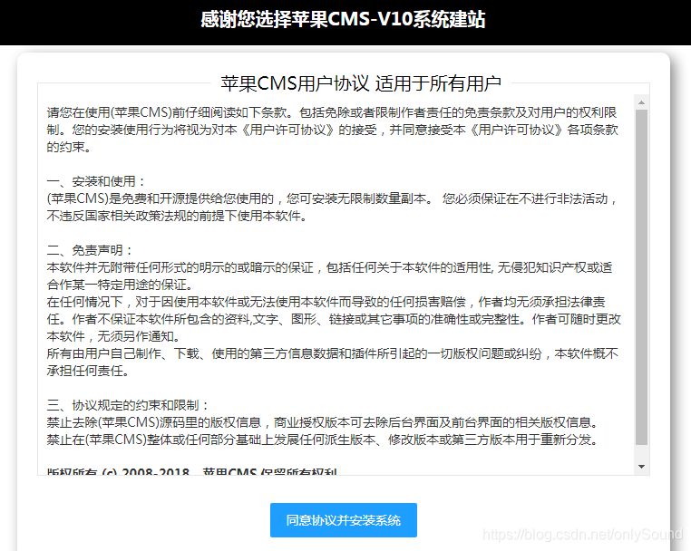 七、接着在浏览器的地址栏上输入 http://www.你的域名.com/install.php 正常就会弹出程序的开始安装界面