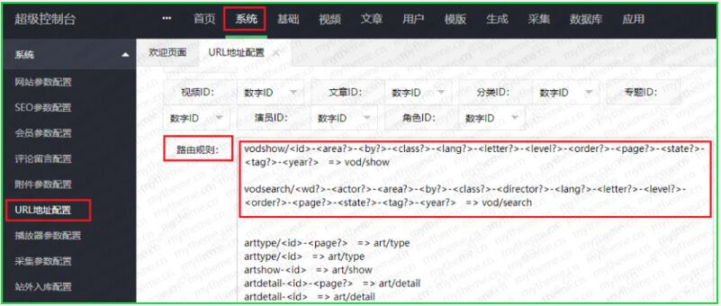 1 小时前 上传 修改方法:这2个问题可以在系统后台的路由规则一起修改即可搞定: 系统>>url地址配置>>路由规则>>路由伪静态设置>>路由规则 分类筛选链接修改为: vodshow/=> vod/show (可通过删减里面多余内容完成) 搜索地址链接修改为:vodsearch=> vod/search (可通过删减里面多余内容完成)