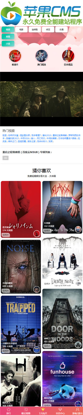 苹果cmsV10最新初恋视界手机版模板,互站花钱淘的,已测试完美无错,带会员中心。
