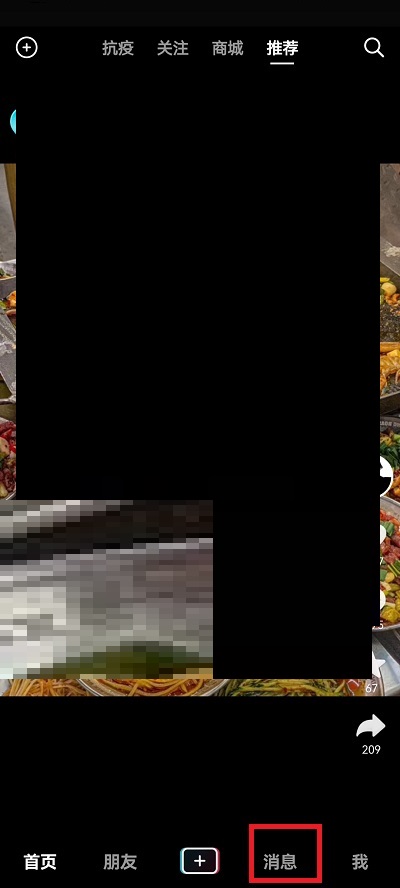 1、首先在抖音界面中,点击下方的【消息】进入到该功能界面;